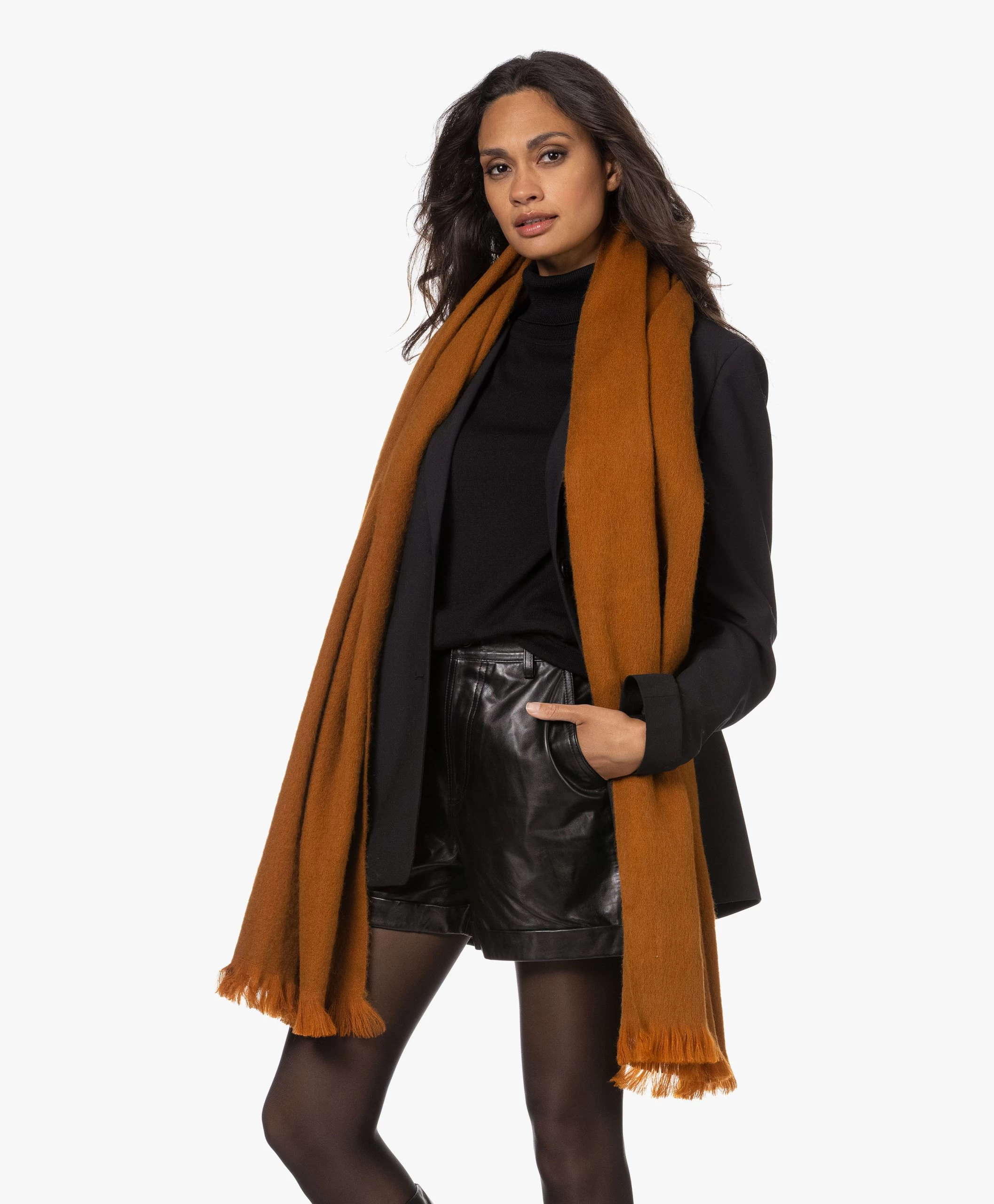Zachter dan zijde en warmer dan schapenwol – deze geweven camelbruine sjaal van Alpaca Loca is handgemaakt van alpacawol met een natuurlijke glans. De pure, gladde vezel bevat geen lanoline en is daardoor hypoallergeen en van nature water- en vuilafstotend. Voeg stijl en comfort toe aan iedere look!