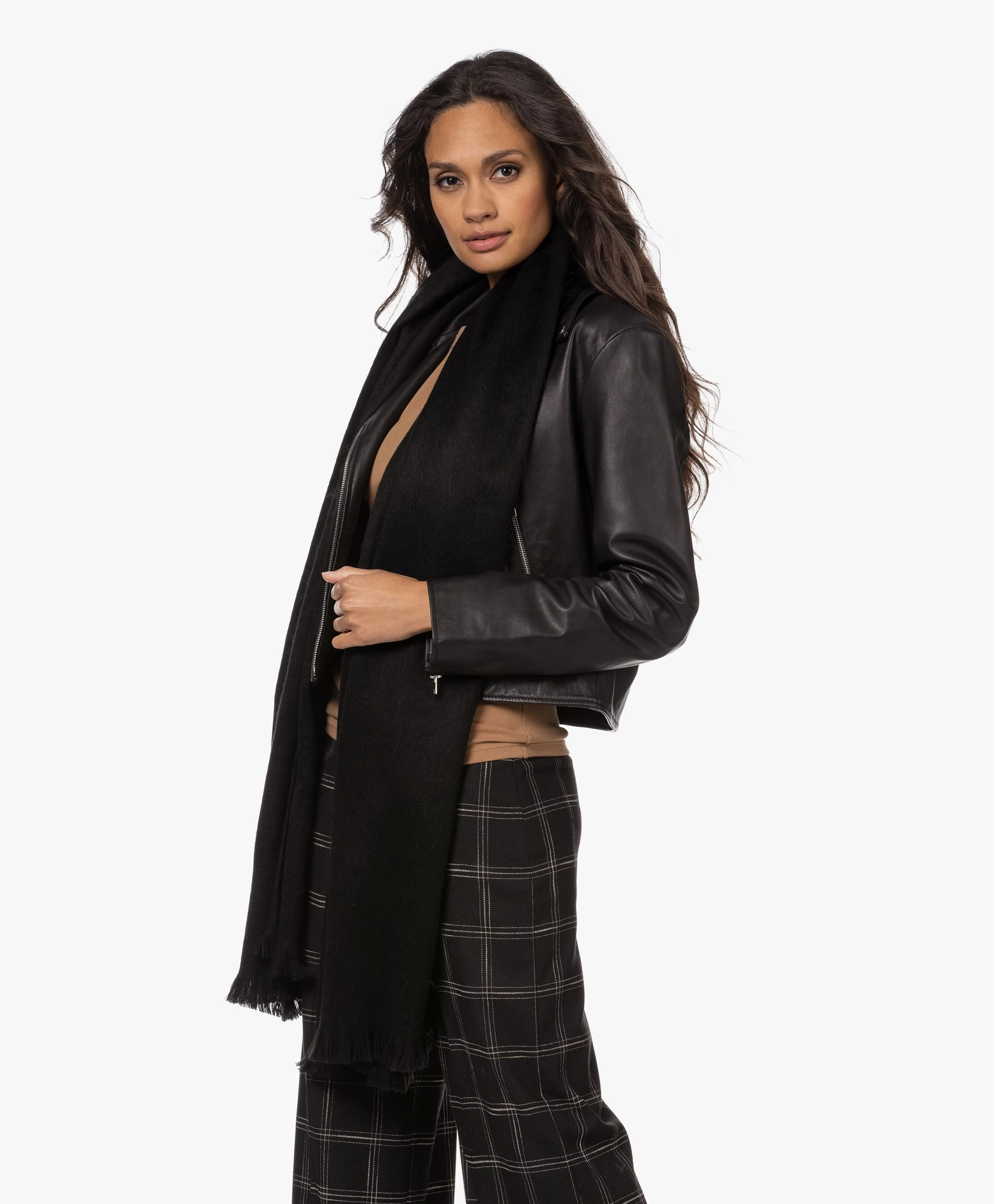 Zachter dan zijde en warmer dan schapenwol – deze geweven zwarte sjaal van Alpaca Loca is handgemaakt van alpacawol met een natuurlijke glans. De pure, gladde vezel bevat geen lanoline en is daardoor hypoallergeen en van nature water- en vuilafstotend. Voeg stijl en comfort toe aan iedere look!