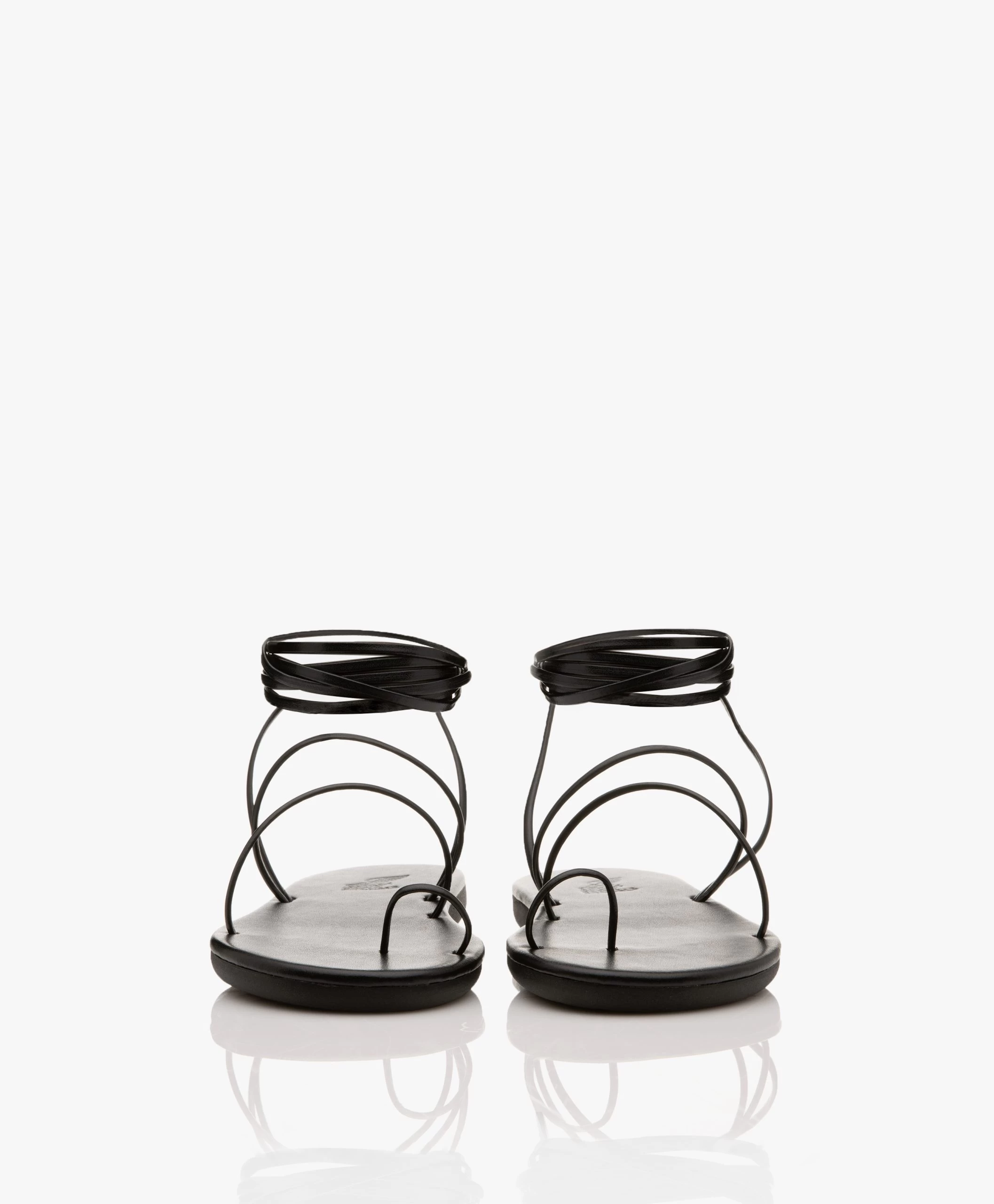 Extra-smalle bandjes tegenover een grove platformzool brengt sierlijke en eigentijdse elementen samen in het ontwerp van sandalen Du van Ancient Greek Sandals. Deze zwarte teensandalen hebben een striksluiting om de enkel en komen met een comfortabel, gewatteerd voetbed voor ultiem comfort en ondersteuning. Gemaakt van hoogwaardig, zacht en soepel leer – precies zoals we gewend zijn van het merk.