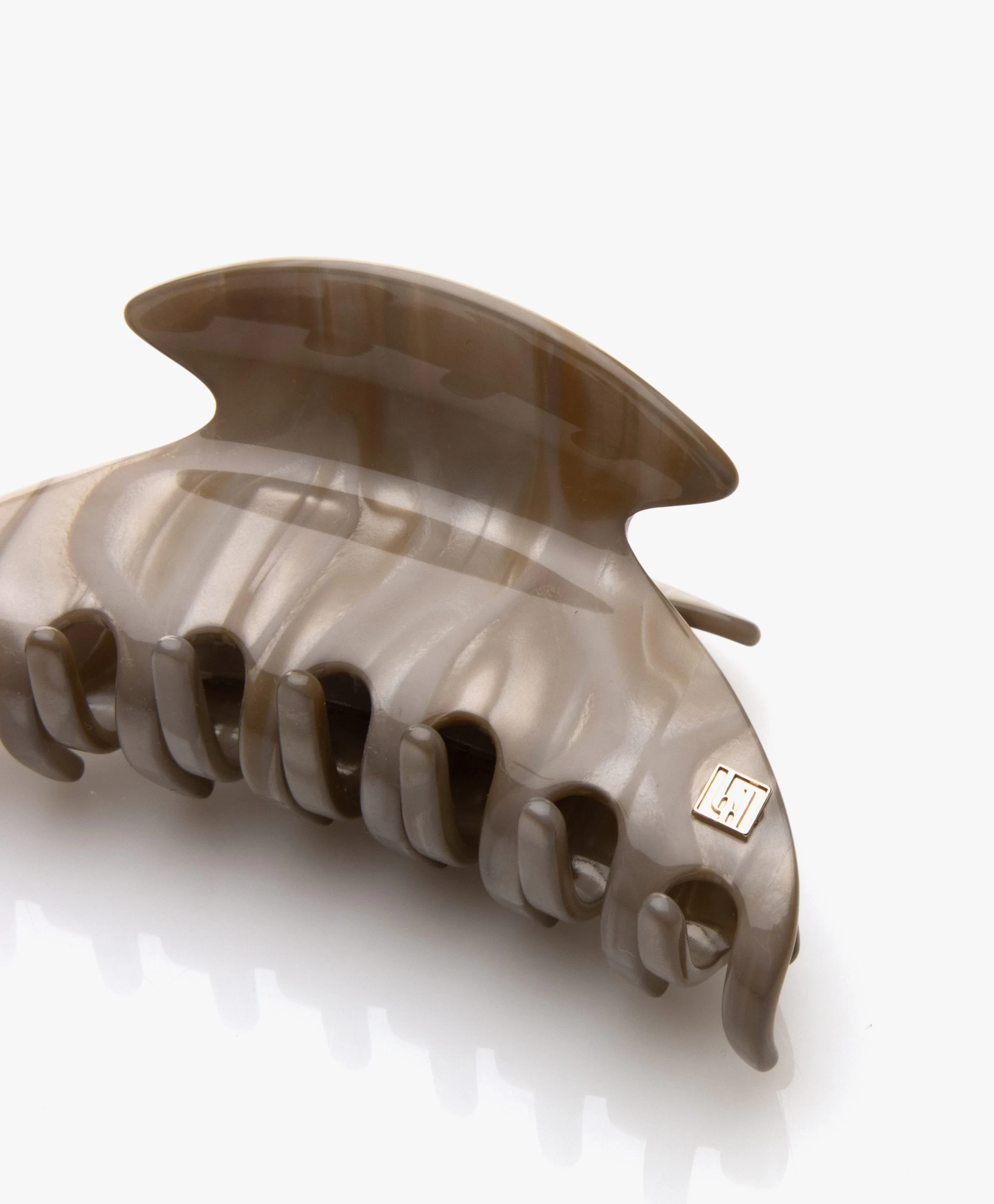 Deze handgemaakte Bon Dep haarklem komt in een marmer-geïnspireerd ontwerp in licht taupe en geeft een klassieke touch aan iedere hairdo. Gemaakt van een stevige kwaliteit met optimale grip in het haar, zonder te beschadigen. Praktisch en stijlvol, precies zoals we van het merk gewend zijn.