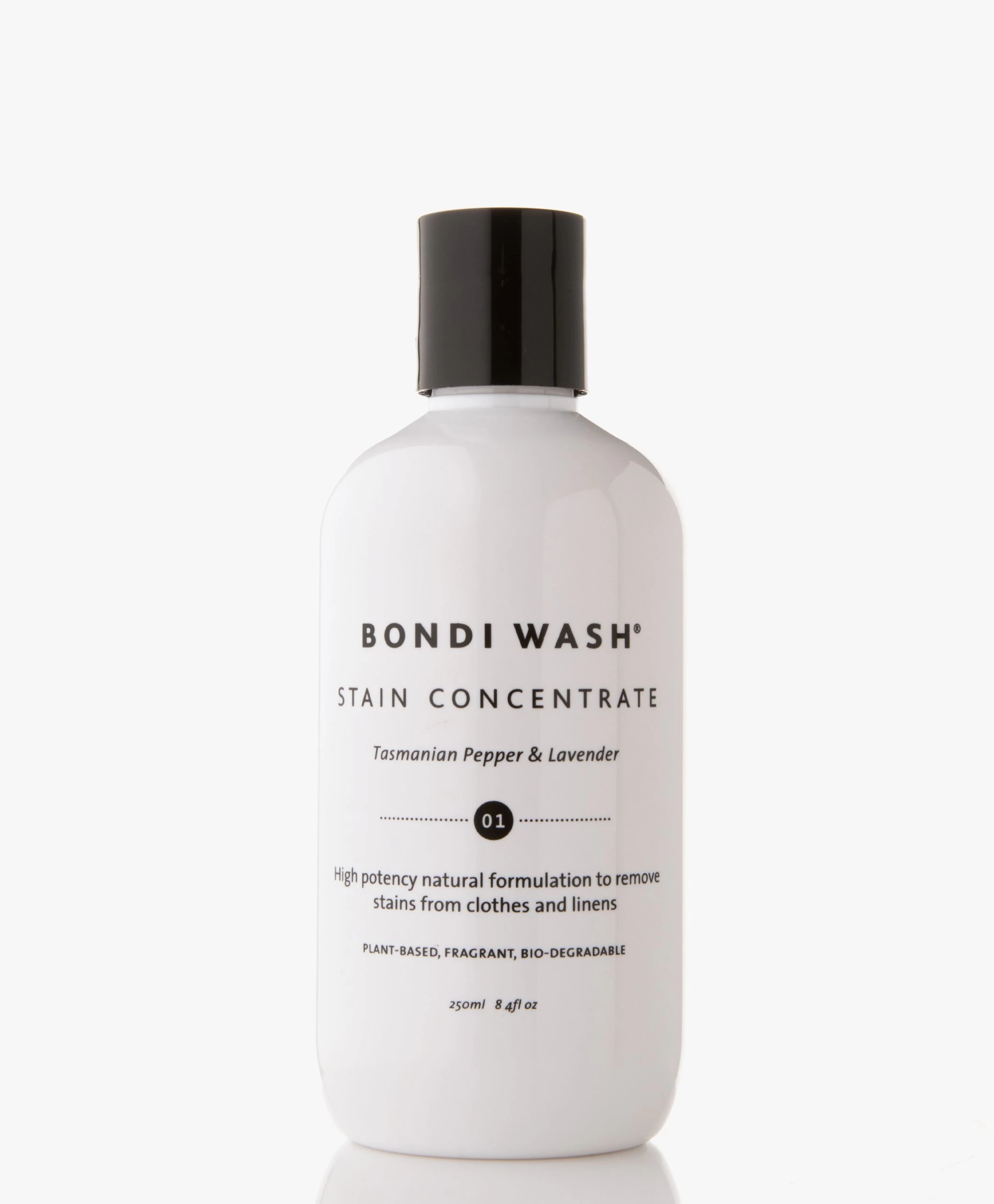 Bondi Wash brengt Stain Concentrate – een formule die ontwikkeld is voor brandschone was of het verwijderen van hardnekkige vlekken uit kleding en linnengoed. Dit plantaardige concentraat is biologisch afbreekbaar en komt met de heerlijke geur van houtachtig, ontspannend Tasmanian Pepper & Lavender.