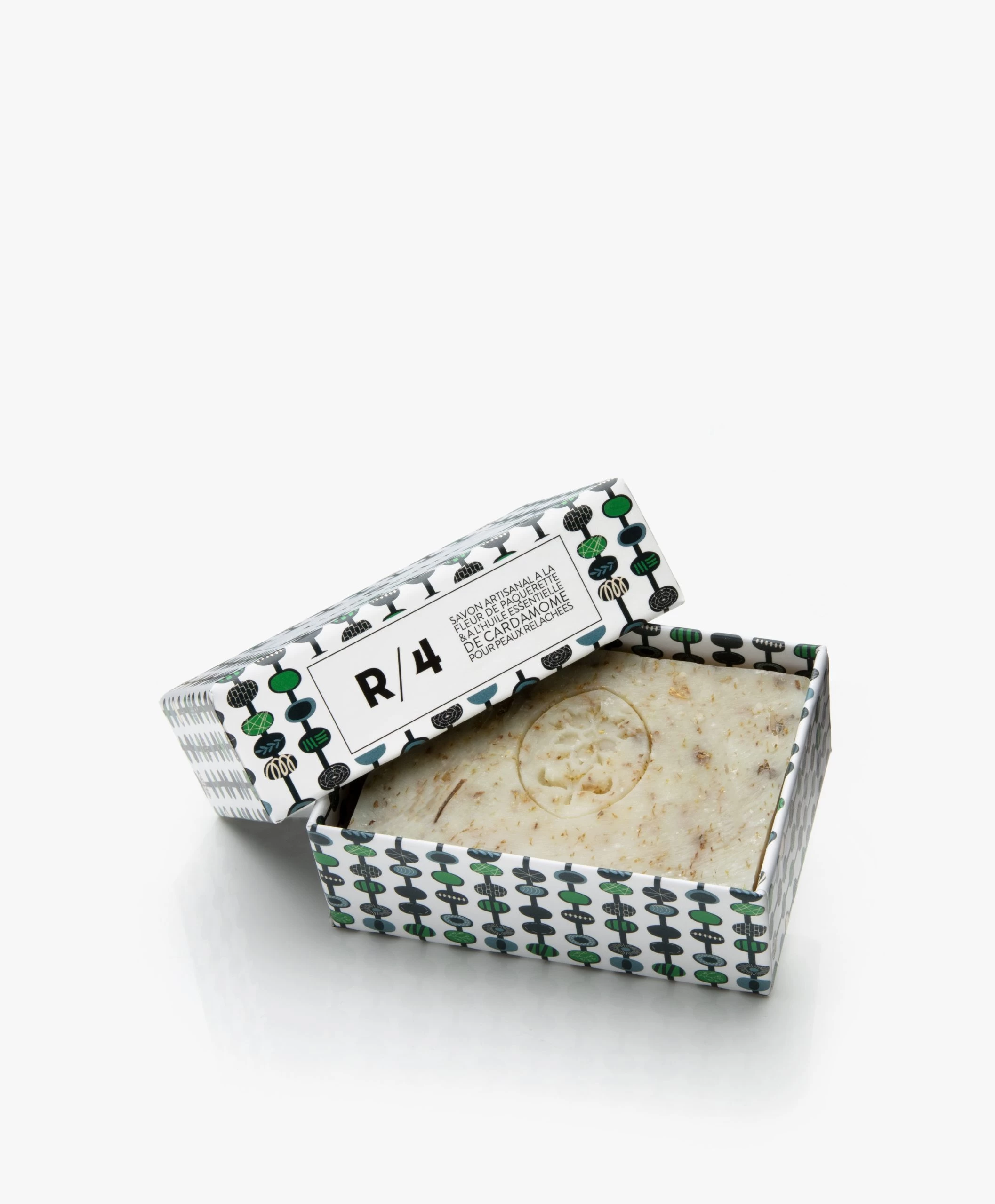 Cosmydor weet wat je huid nodig heeft en ontwikkelt deze handgemaakte R/4 Essential Oil zeep in de geur Daisy Flower & Cardamom. De zeep is verrijkt met kokosolie en sheaboter als verzorgende basis en de essentiële oliën van madelief en kardemom herstellen en zuiveren een verslapte huid. Tegelijkertijd ontstaat er een heerlijke geurervaring.