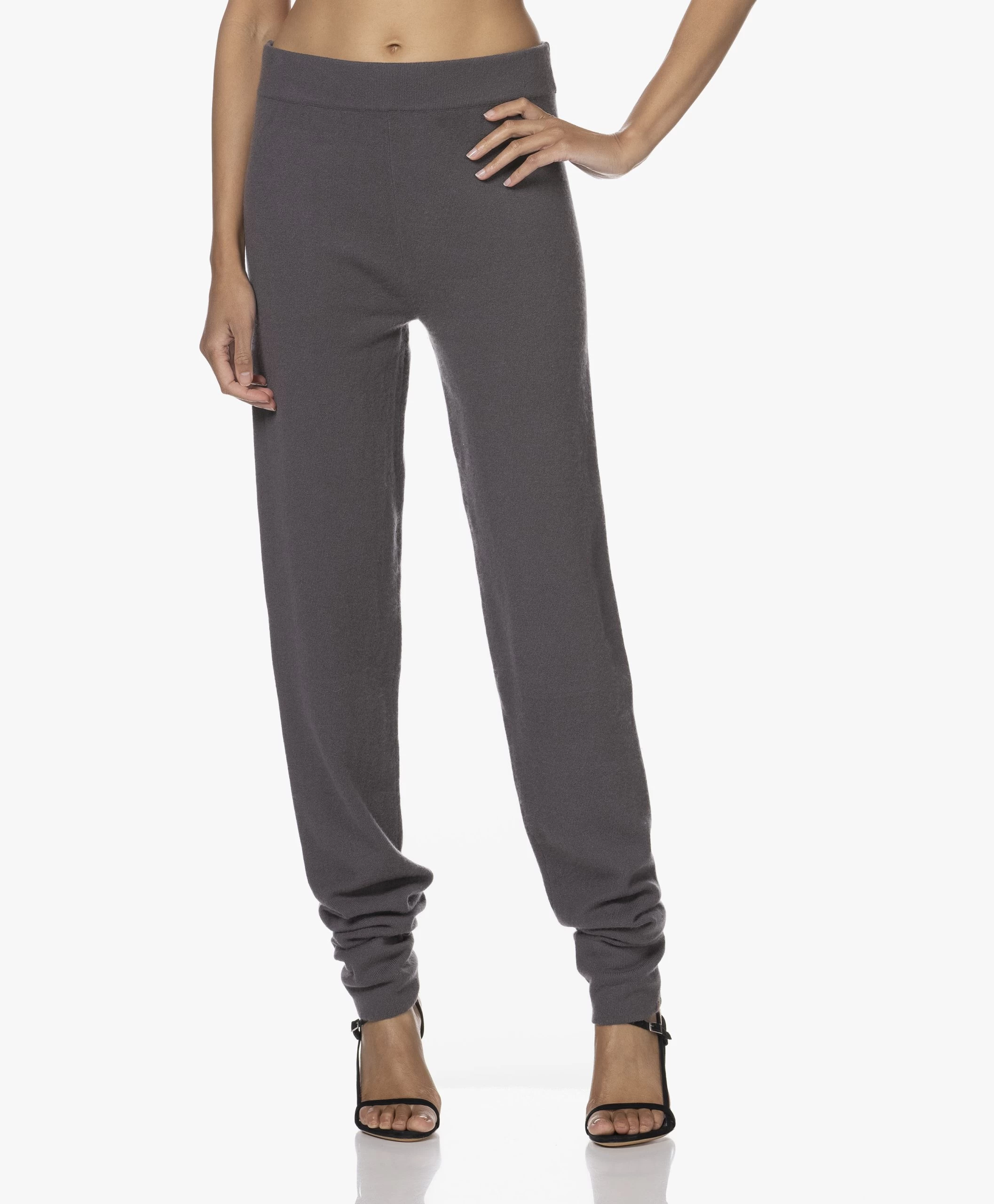 Maak van je lounge-beleving een luxe beleving met extreme cashmere’s middengrijze gebreide broek N°151 Legs. Het hoogwaardige cashmere-mix garen is zacht en comfortabel: de broek is iets steviger gebreid en verrijkt met stretch voor optimale vormvastheid. De pasvorm met verhoogde elastische taille en taps toelopende, extra lange pijpen zorgt voor een sluik silhouet.