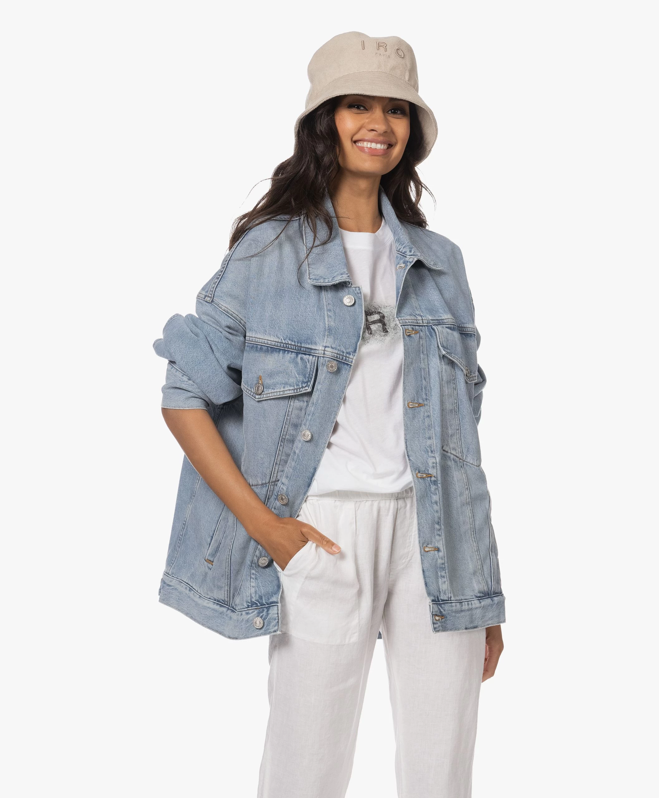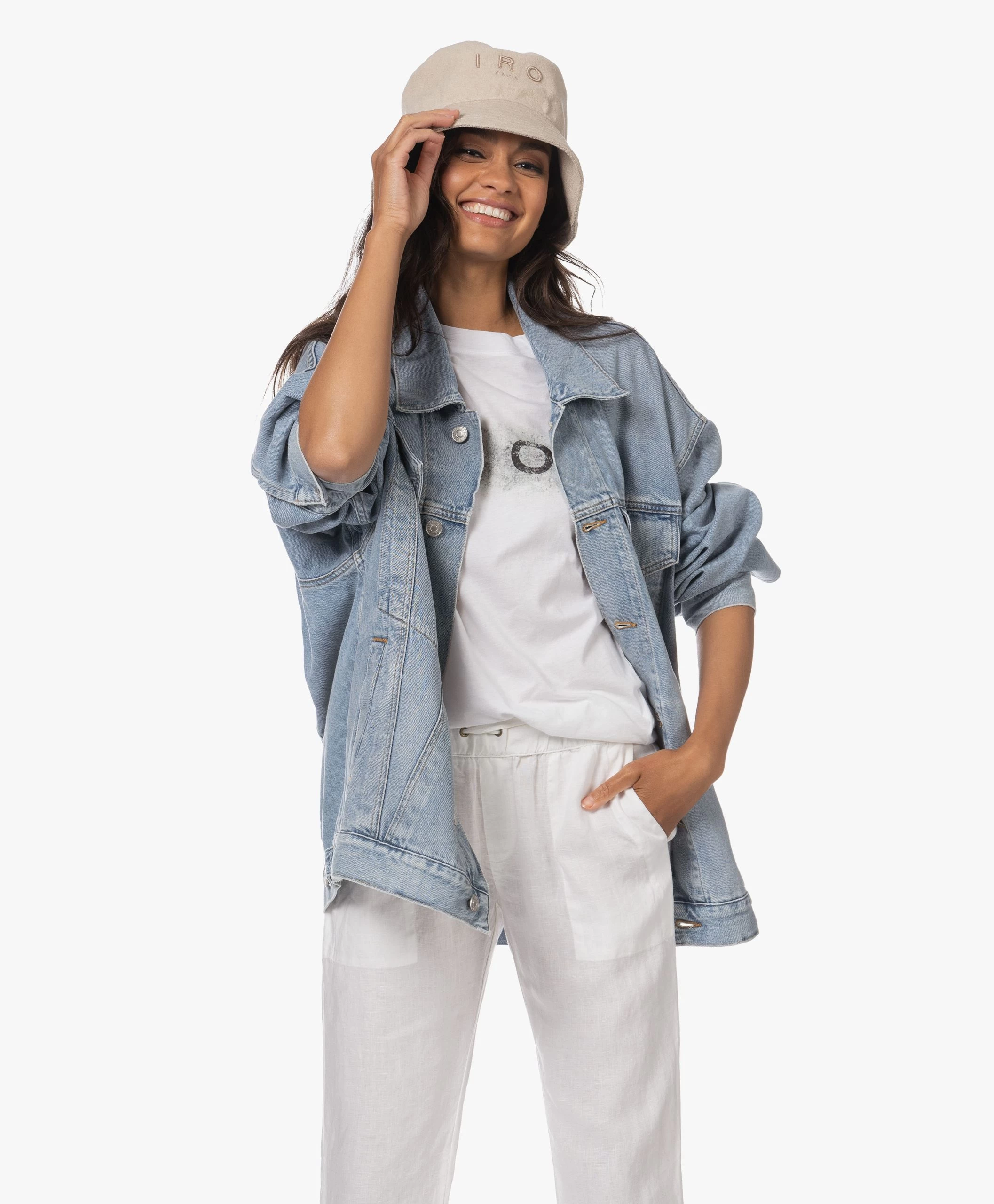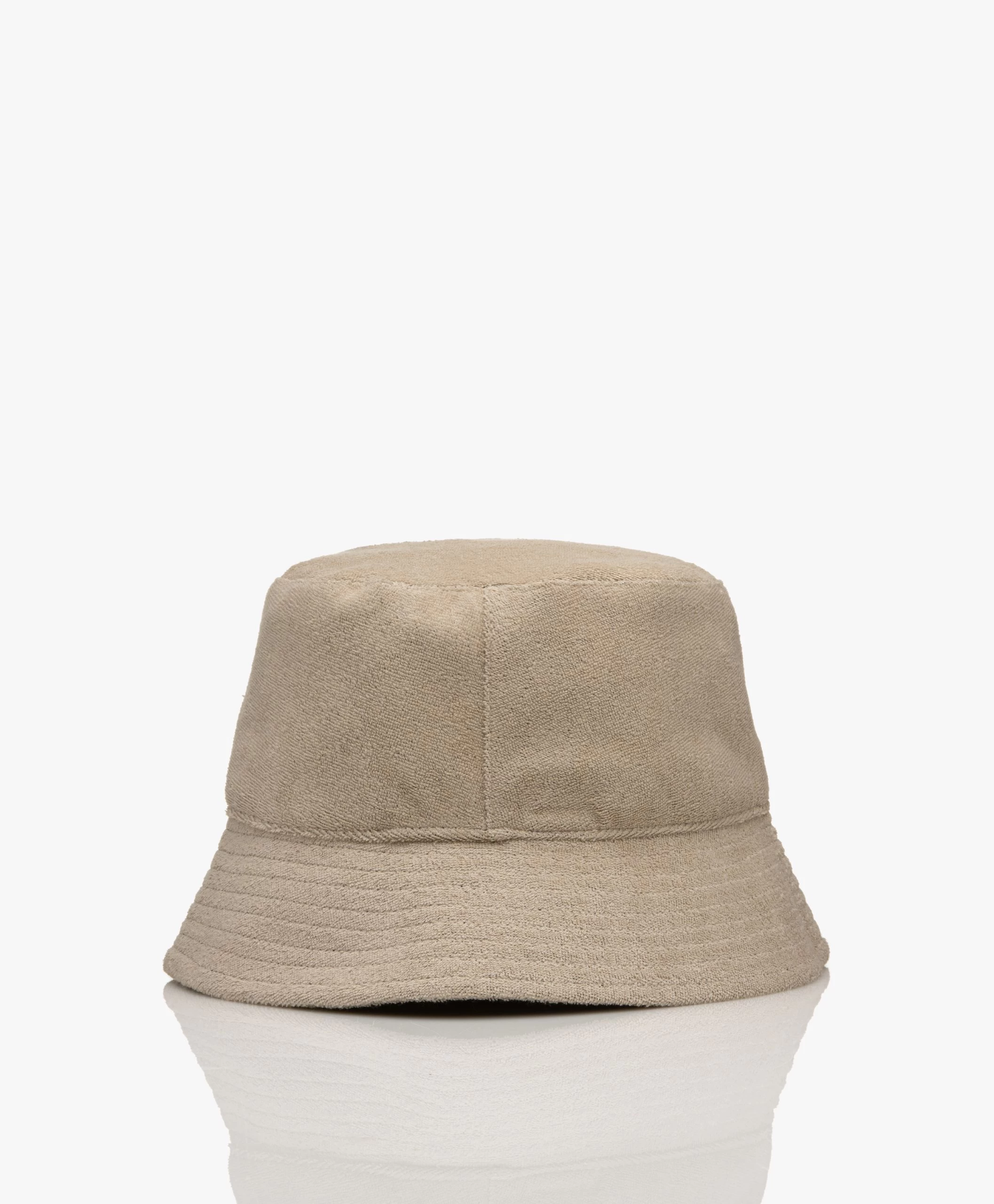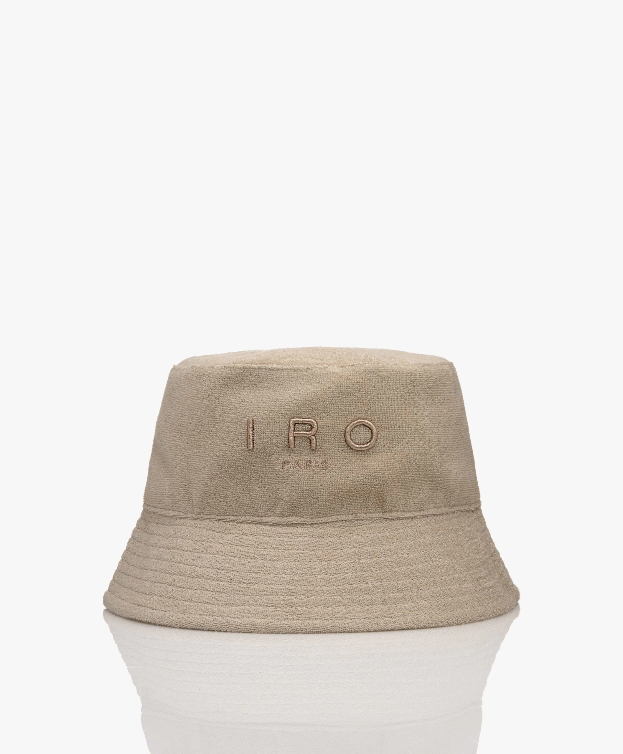 De bucket hat staat eigenlijk iedereen – probeer het, en je bent om. IRO’s zandkleurige Veneto Sponge is gemaakt van niet te zware katoenmix terry: beter bekend als badstof. De rand is meernaalds doorgestikt en het ton-sur-ton logoborduur geeft aan dat het hier een heuse IRO betreft.