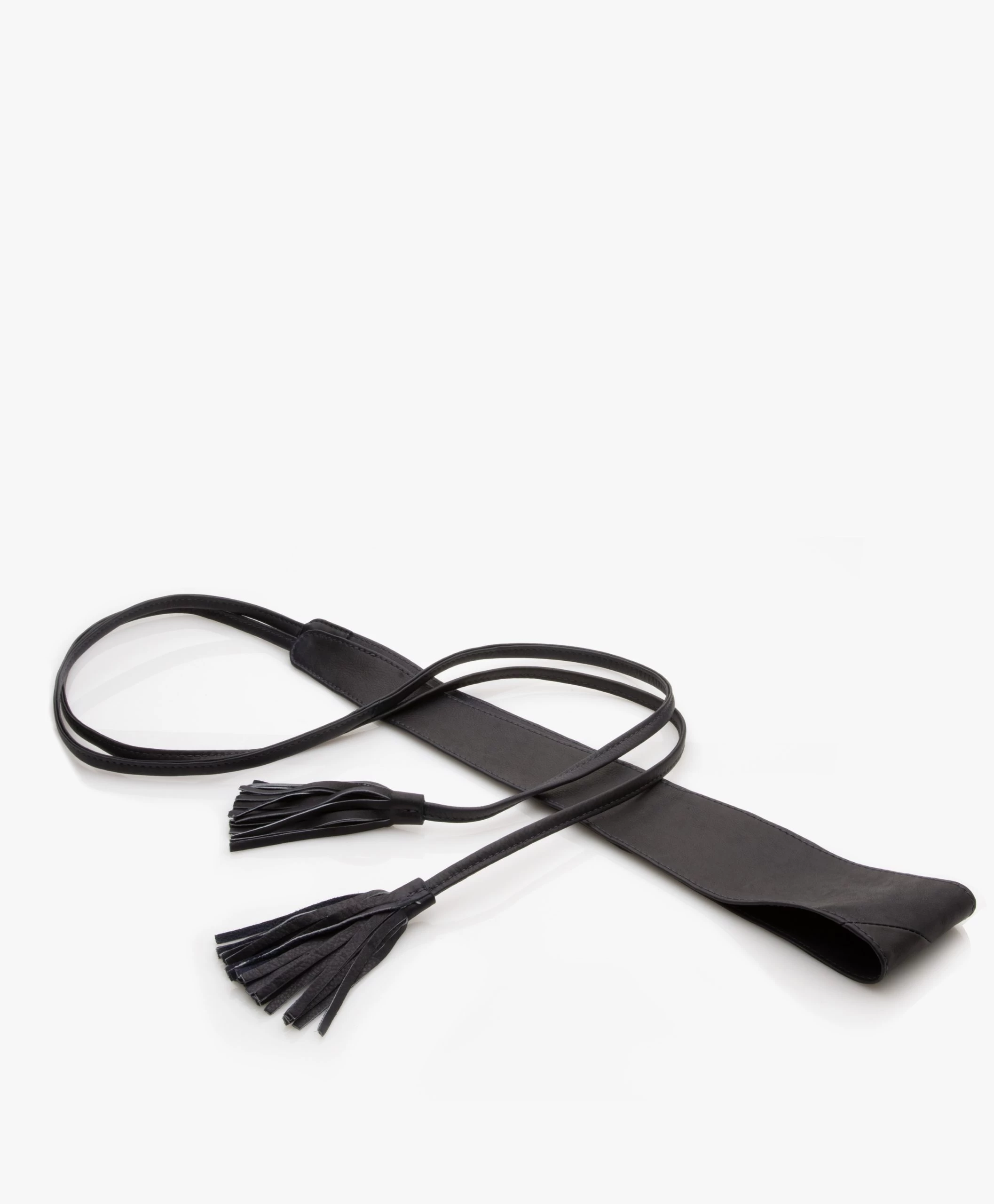 KYRA herontwerpt hun iconische wikkelriem en voegt ditmaal leren kwastjes toe aan de uiteindes. De brede strikceintuur legt op stijlvolle wijze de focus op de vrouwelijke taille, terwijl de soepele, hoogwaardige leerkwaliteit comfort biedt. Ontworpen in modern diep donkerblauw.Â