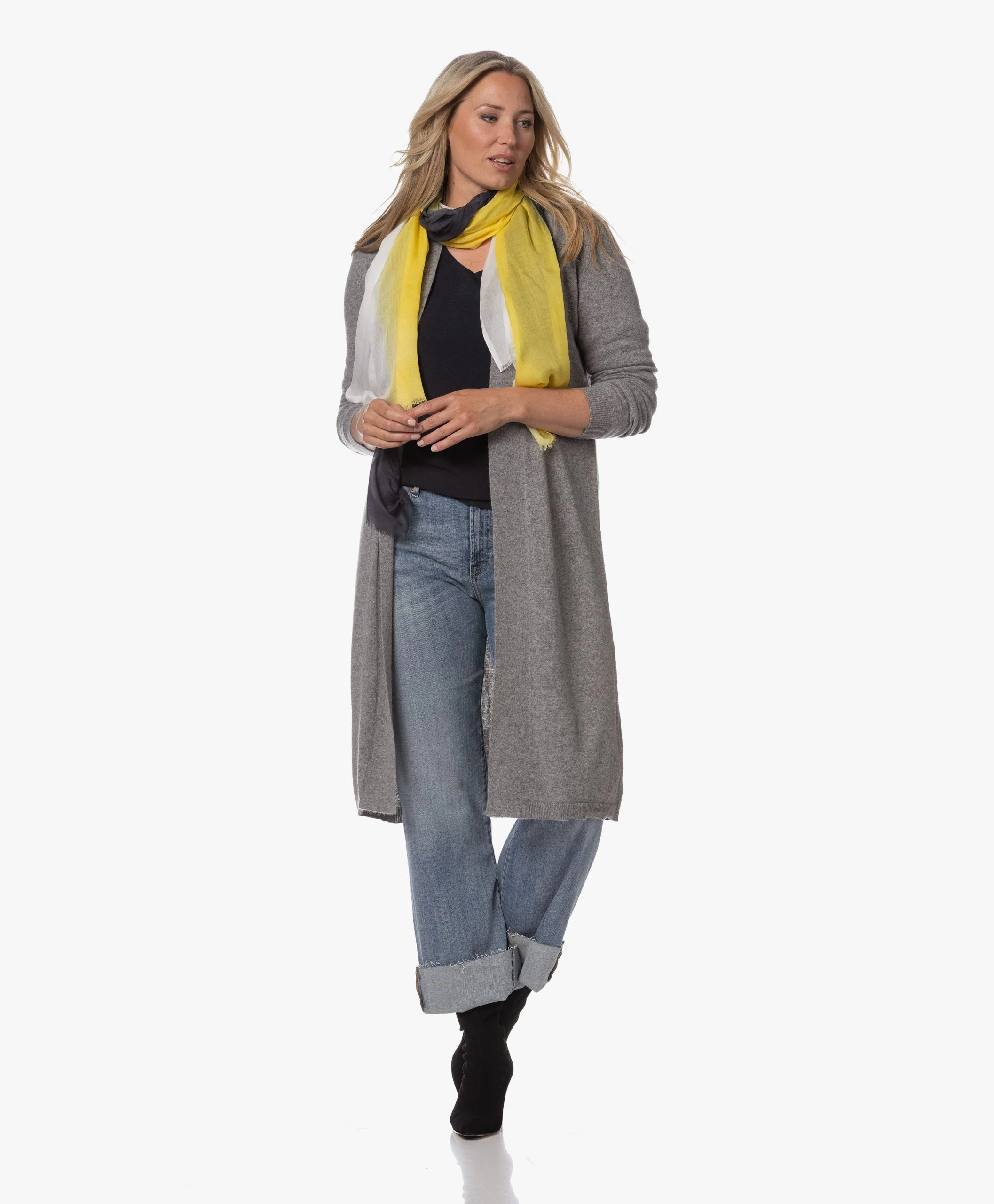 De veelzijdigheid van deze KYRA Violette dip-dye sjaal wordt gecreëerd door de lichtgewicht kwaliteit én het stijlvolle kleurverloop van off-white en geel tot donkerblauw. De rechthoekige, soepele geweven sjaal is gemaakt van ultra-zacht en duurzaam Lenzing modal dat bekend staat om de positieve ecologische voetafdruk.