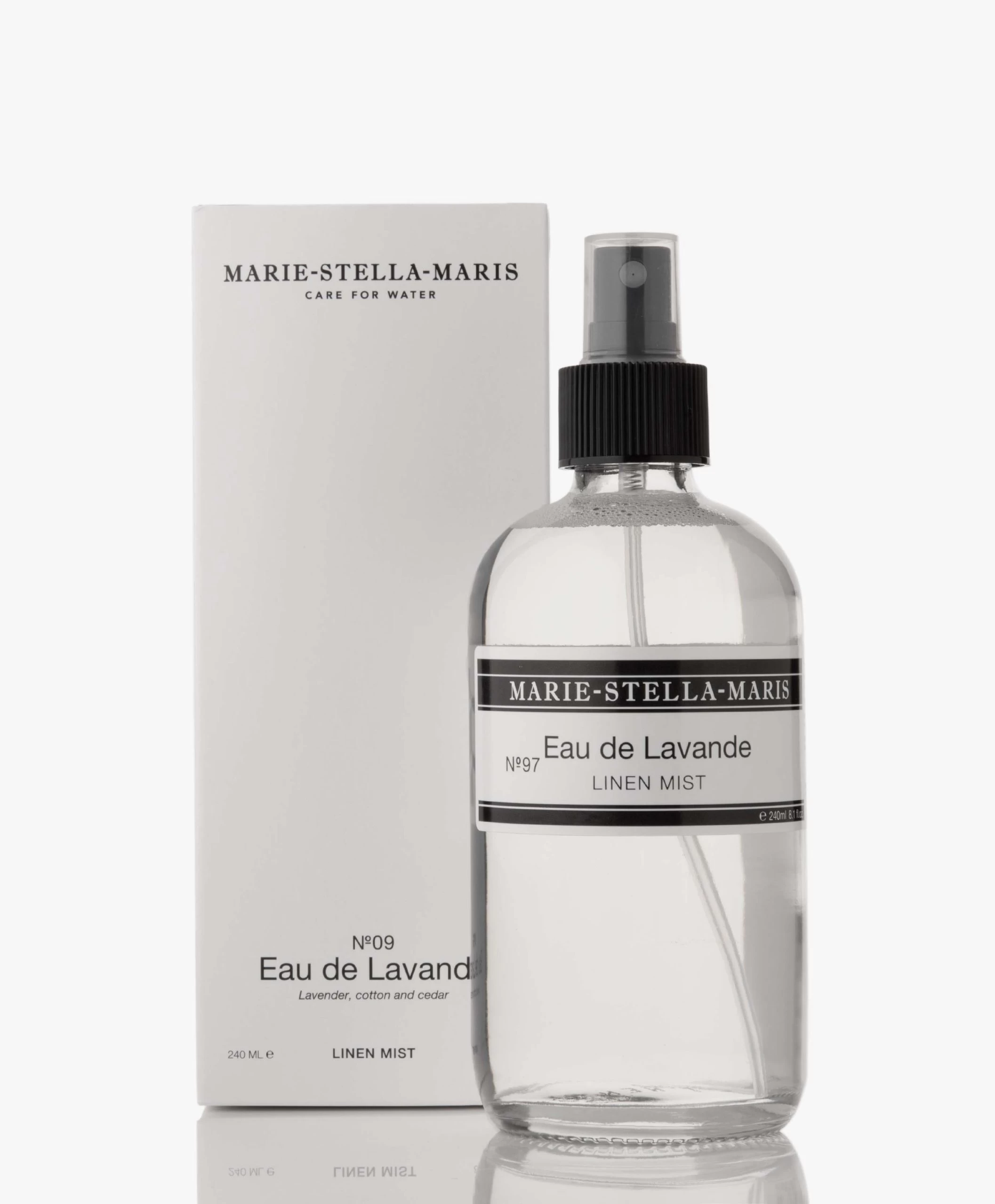 Ontdek het kalmerende en ontspannende karakter van lavendel en eucalyptus in deze No.09 Eau de Lavande linnenmist spray van Marie-Stella-Maris. Terwijl de spray beddengoed, zacht meubilair en kleding op subtiele wijze verfrist, zorgt de geur van lavendel voor een rustgevende werking – ideaal voor stressmomenten of bij slaapproblemen.