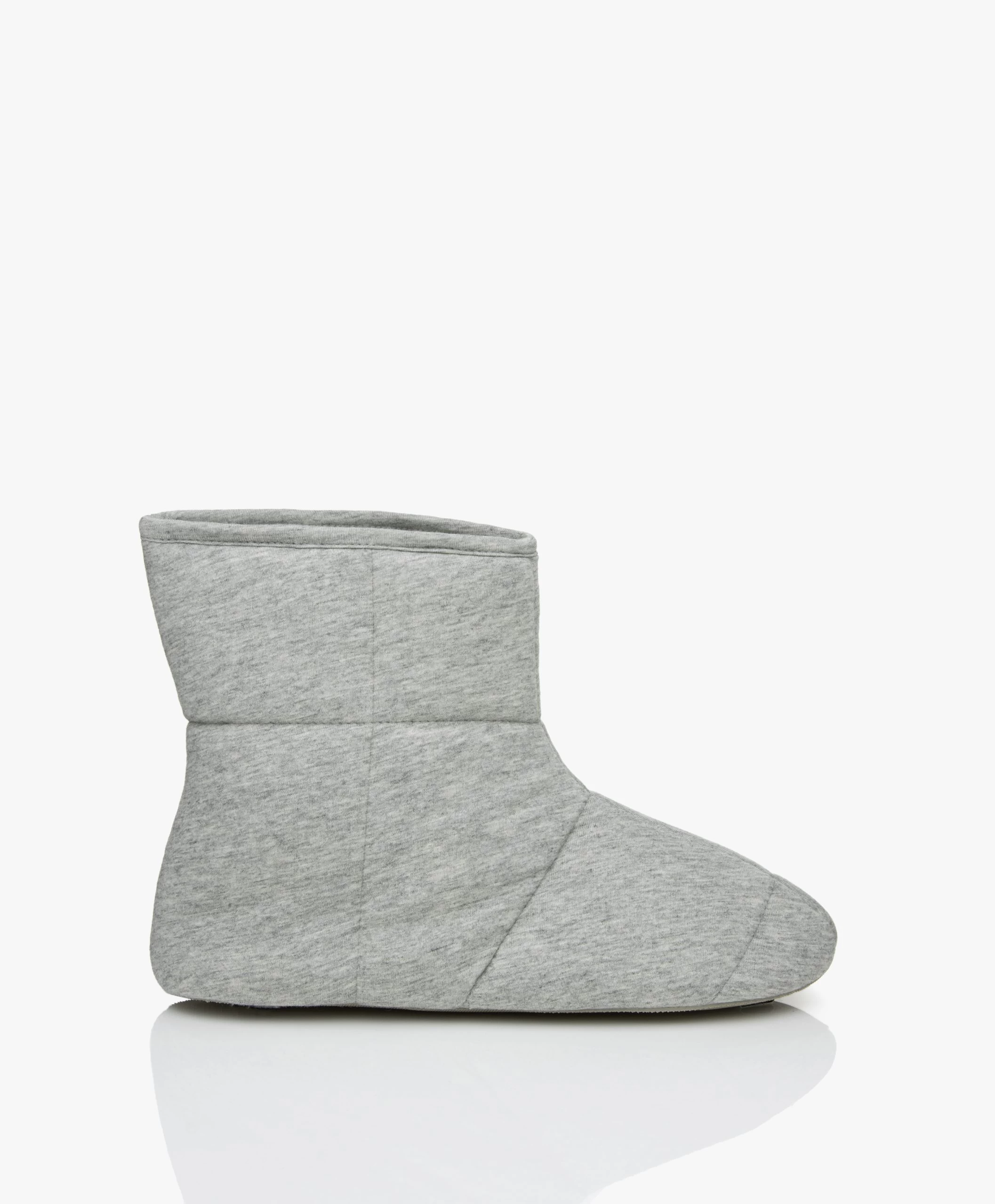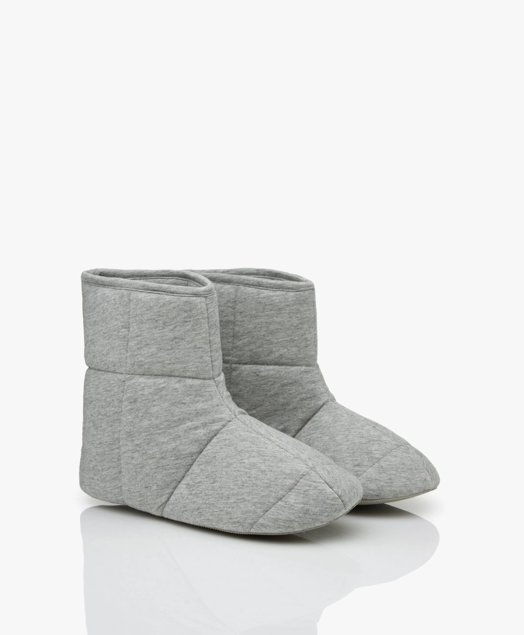 Skin brengt sloffen om daadwerkelijk in te leven. Deze grijze pantoffels komen in een stijlvol gewatteerd ontwerp en zijn enkelhoog. Gemaakt van een katoenen jersey, ontworpen in grijs mêlee en wist je dat er ook een bijpassende badjas is? De rubberen zool heeft een fijn profiel dat lopen makkelijk en comfortabel maakt.