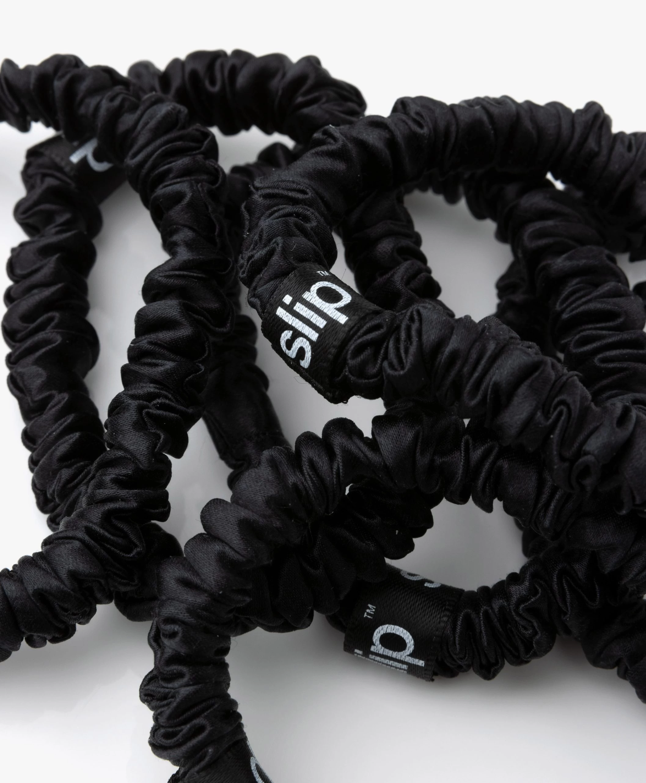 Tijd om je collectie haarelastieken een upgrade te geven. Dit 6 pack van slip™ bevat zwarte scrunchies die niet alleen stijlvol zijn, maar ook dienen als beschermend haaraccessoire dankzij de hoogste kwaliteit Mulbery zijde. De puur zijden kwaliteit heeft de perfecte glans, dikte en zachtheid waardoor haaruitval en beschadiging wordt voorkomen – met name tijdens het slapen.