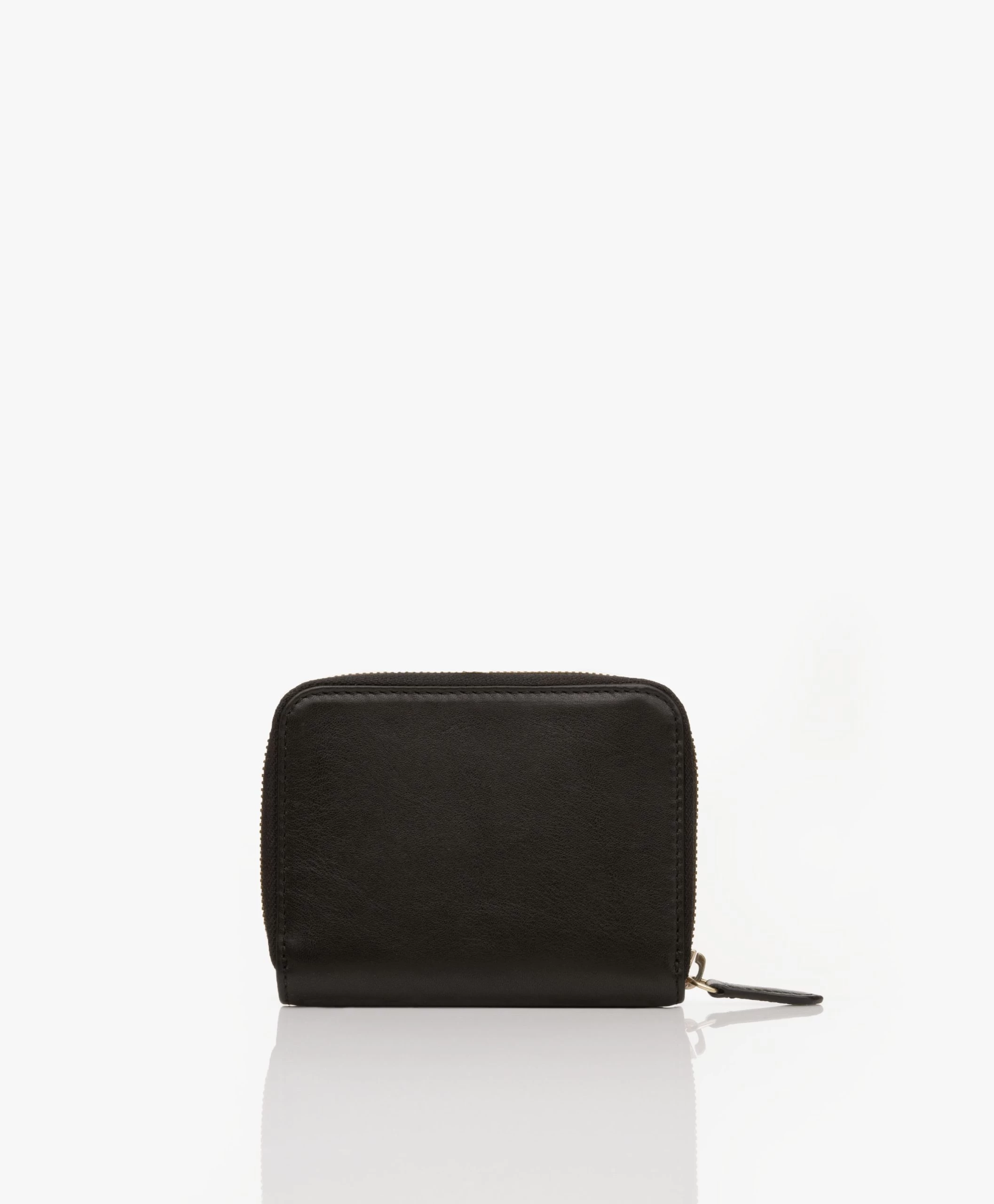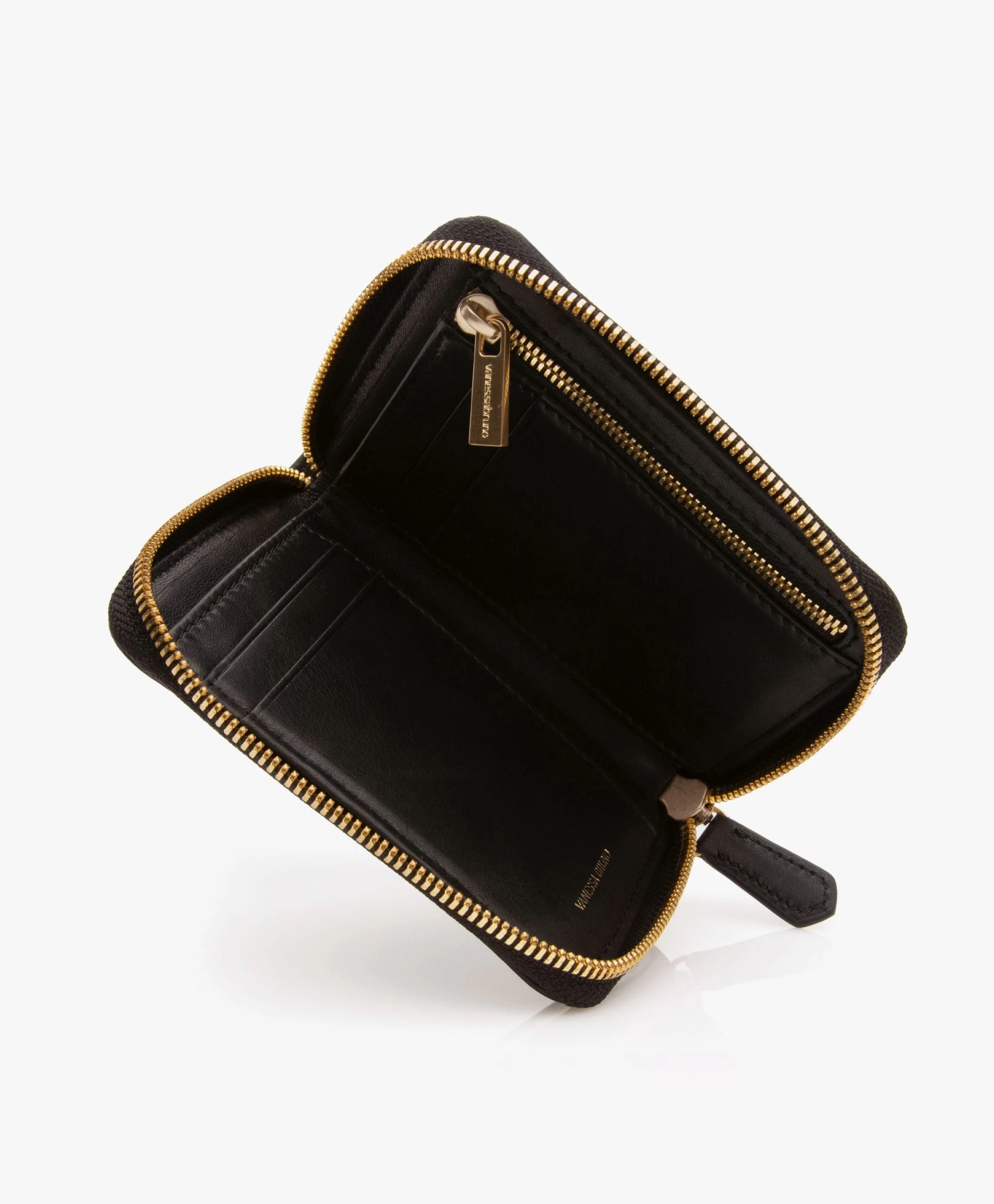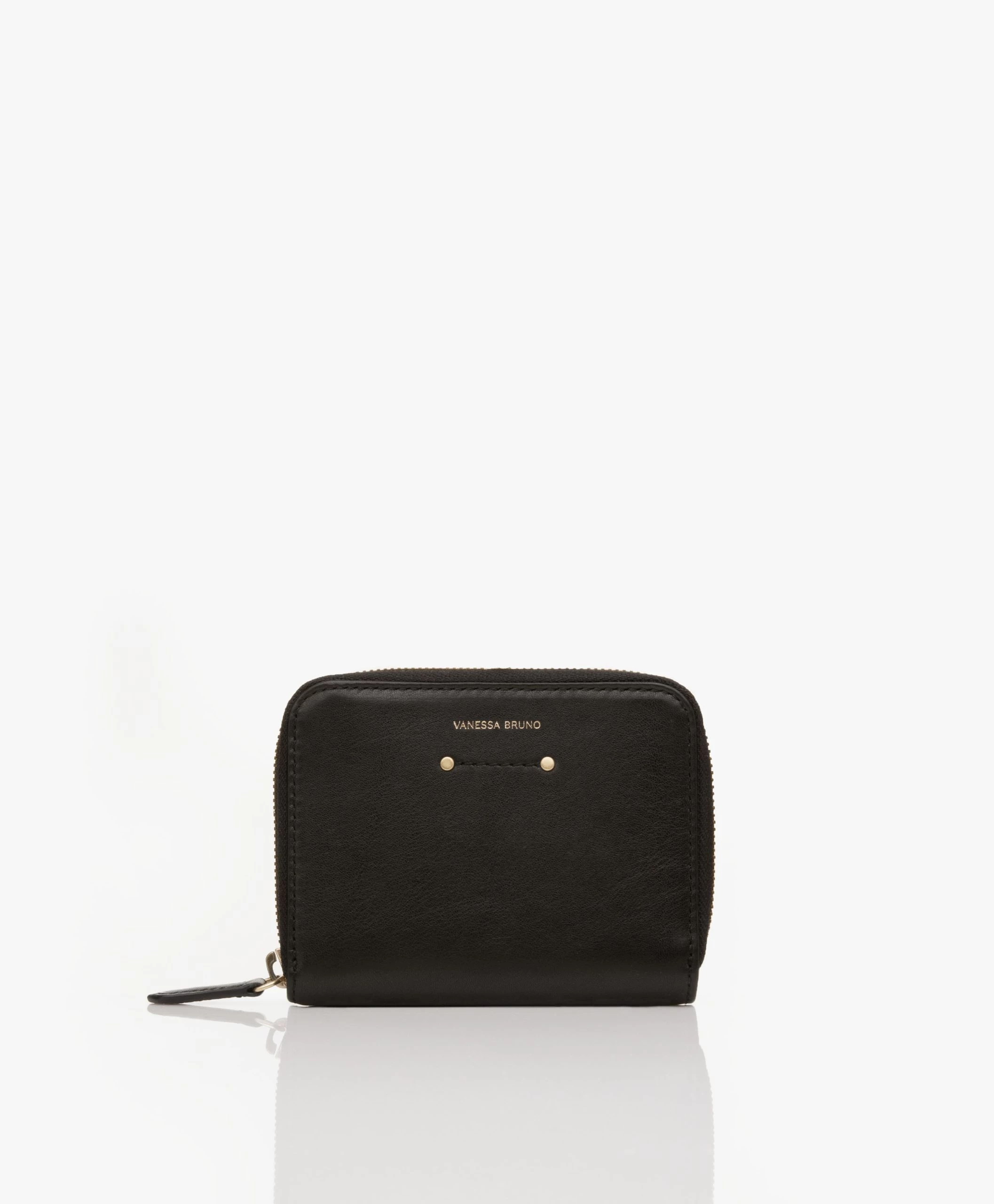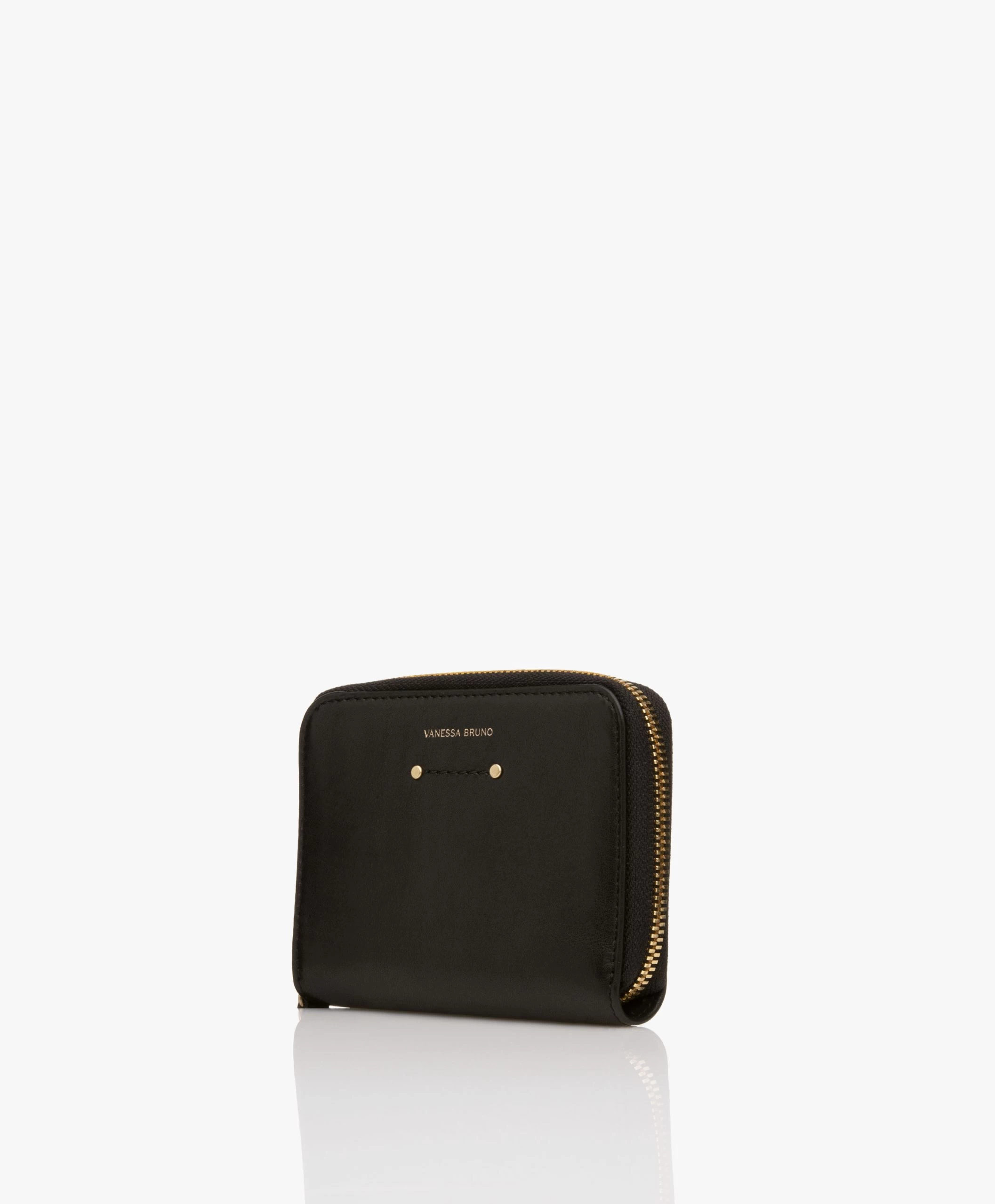 Portemonnees vervangen we niet zo vaak, en dus moet deze naast good-looking vooral tijdloos, kwalitatief én gemakkelijk in gebruik zijn. En laat dat nou net de termen zijn die passen bij Vanessa Bruno’s Holly portemonnee waarin je pasjes, brief- en muntgeld kwijt kunt. Gemaakt van soepel en zacht zwart leer met een gladde finish, voorzien van de merknaam in metallic debossing en goudkleurige studs.
