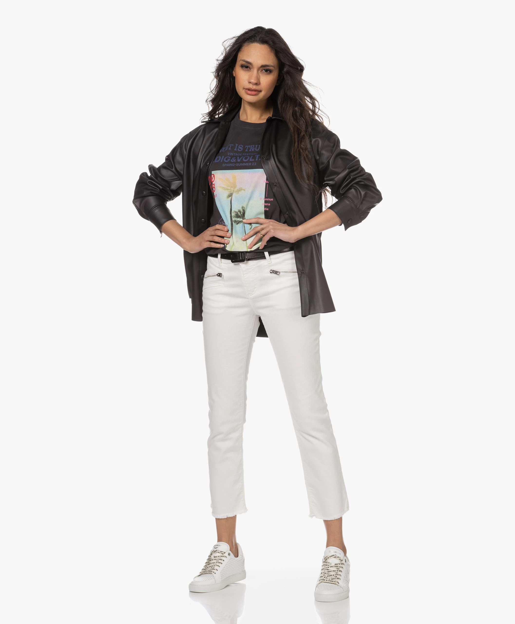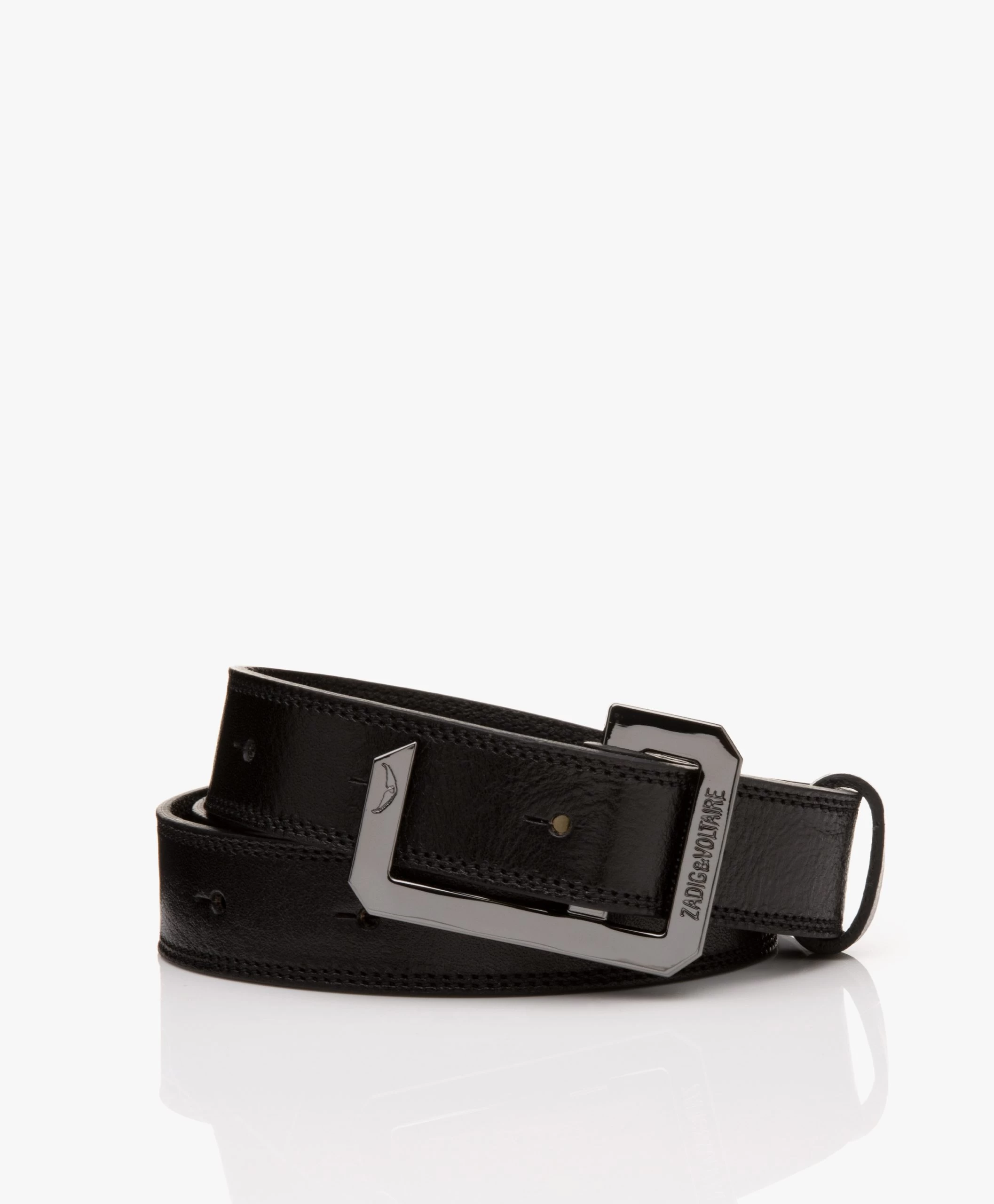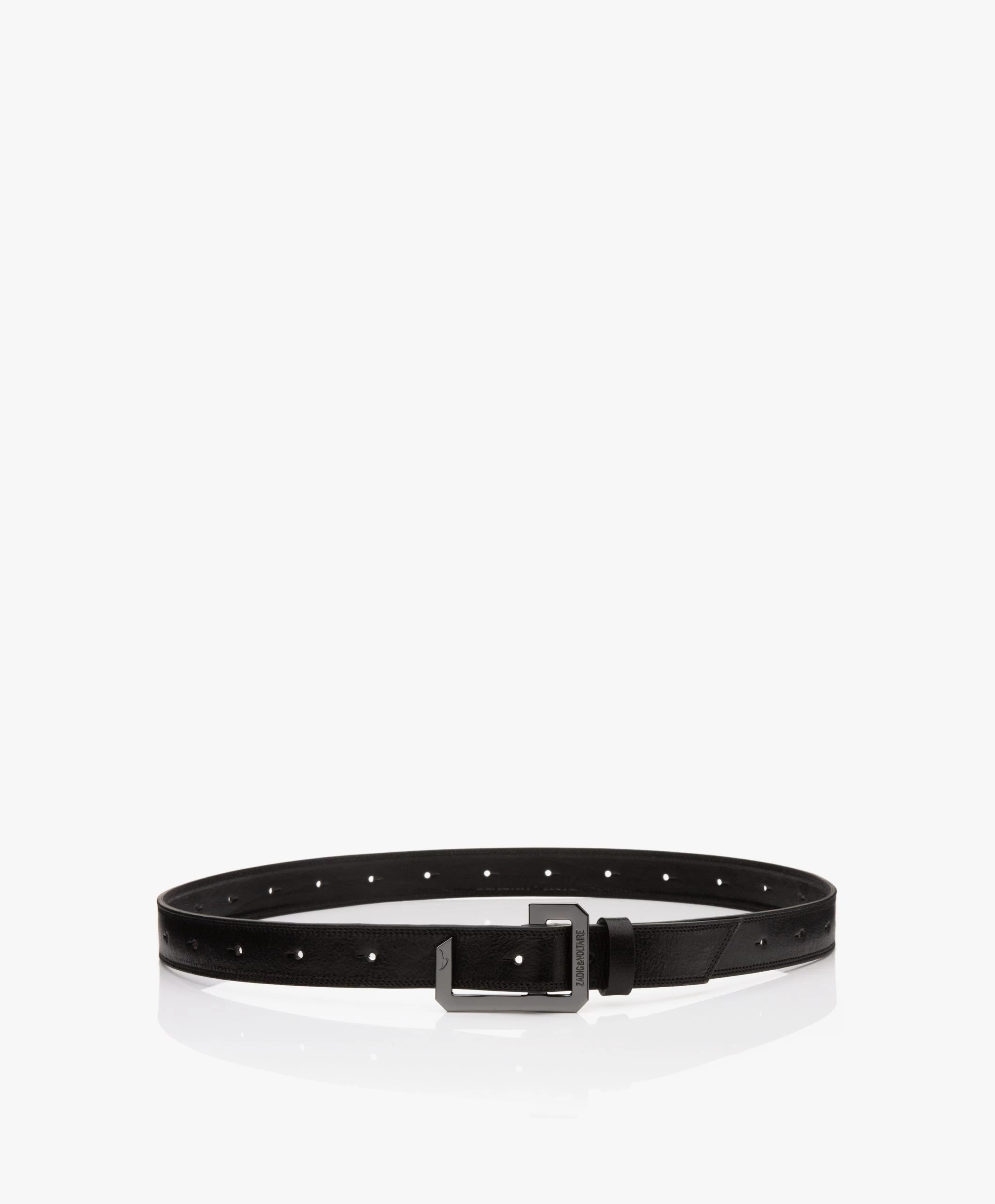 Altijd net even anders en tegelijkertijd helemaal wat we van Zadig & Voltaire verwachten. De La Cecilia riem is uitgevoerd in zwart, subtiel glanzend leer met een fijne structuur. Het smalle design is voorzien van gaatjes over de gehele lengte, waarbij je met de unieke, glanzende grijsmetalen pin-gesp de riem op de gewenste breedte stelt – draag op de heup of in de taille.