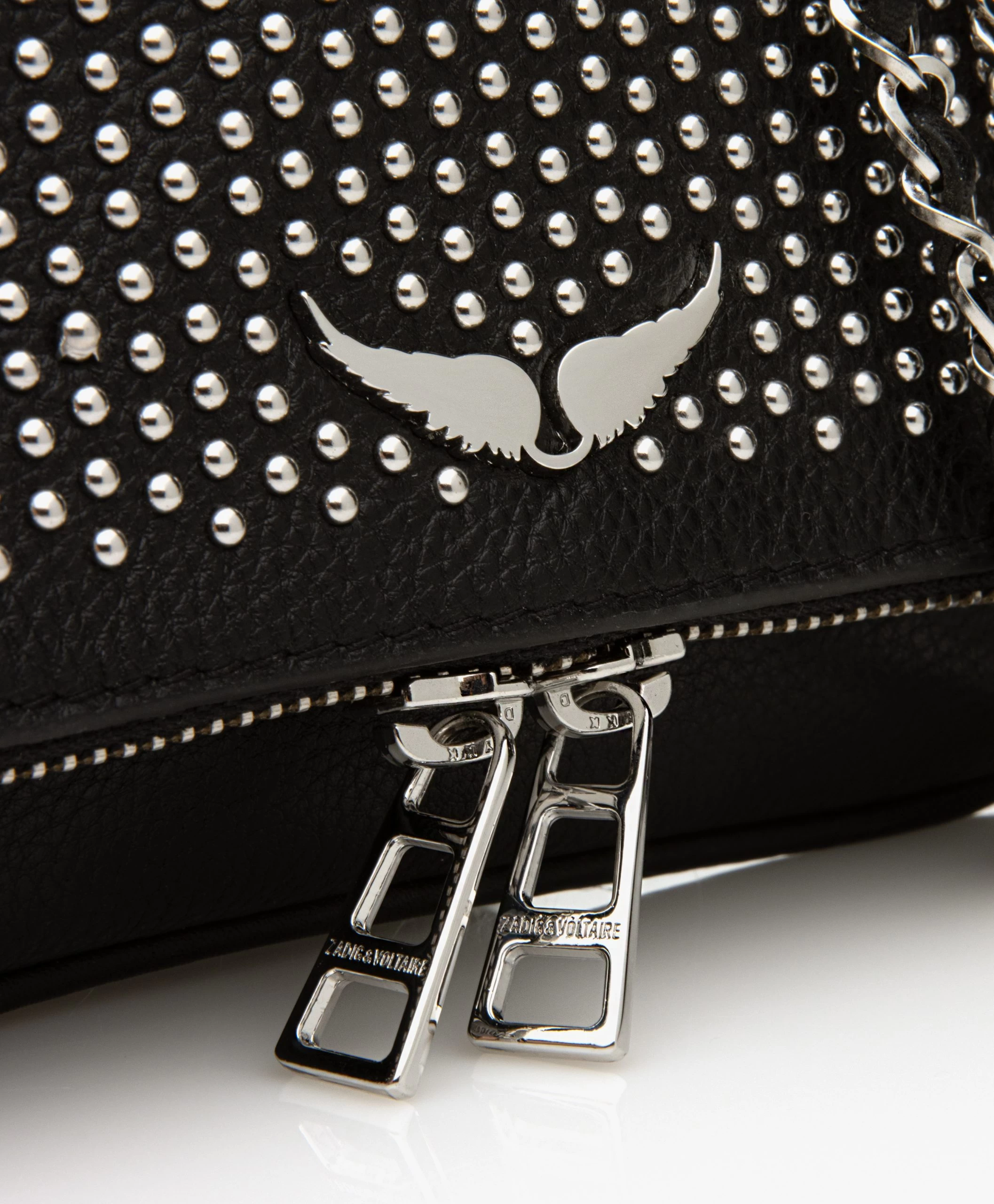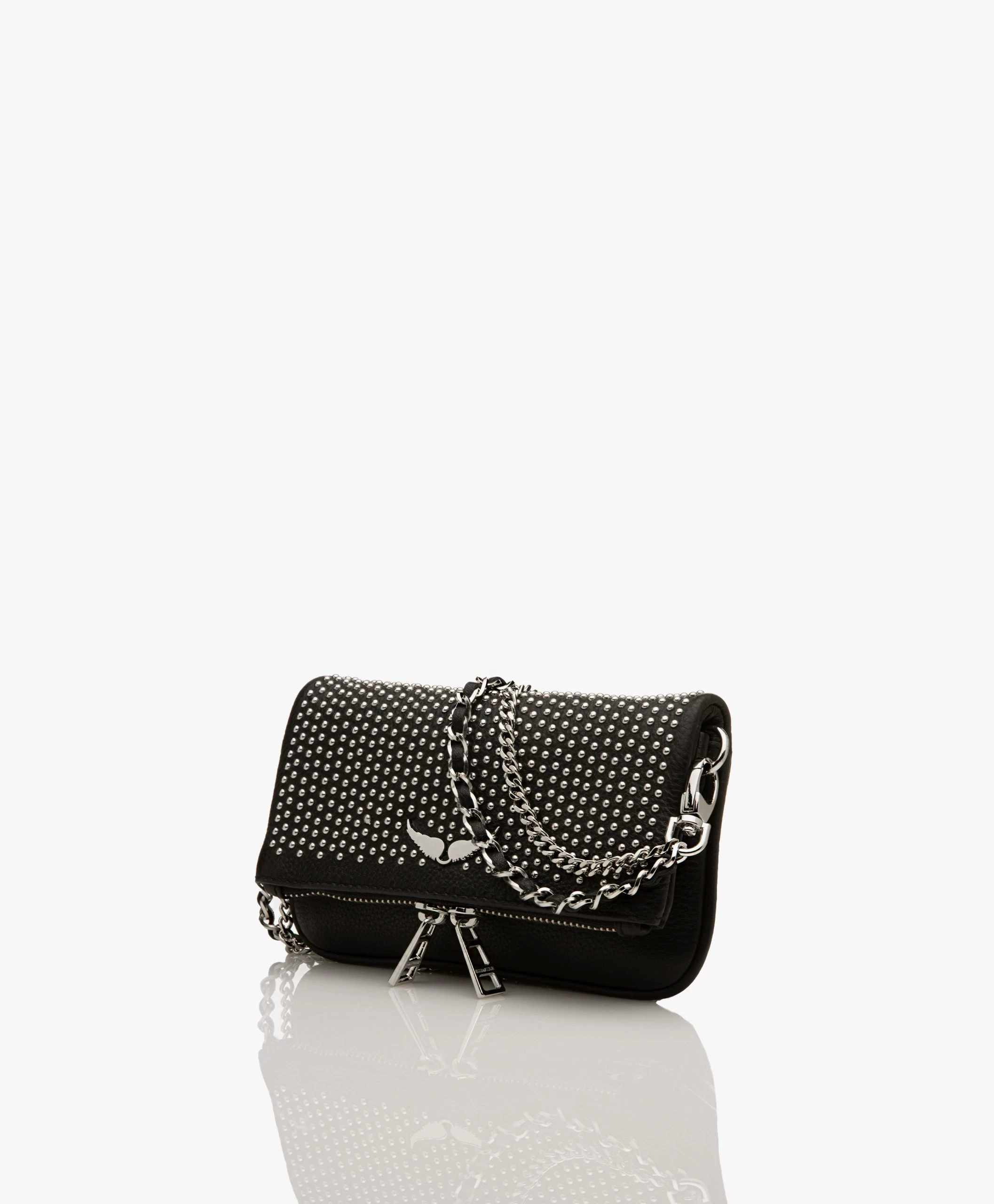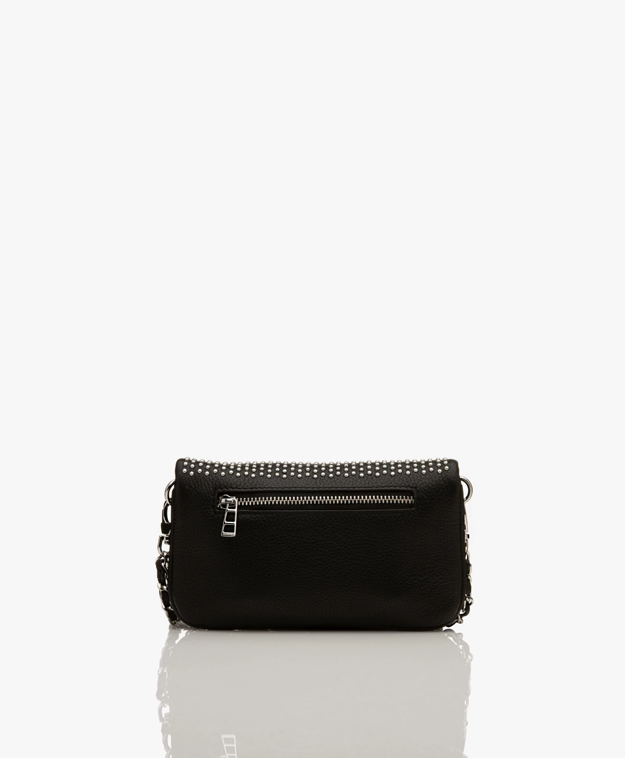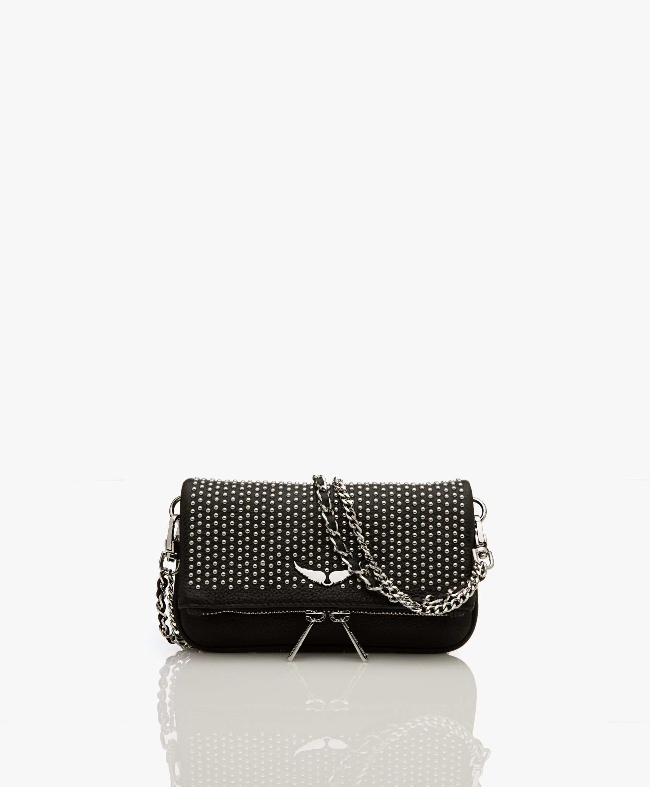 Deze iconische Rock schoudertas van Zadig & Voltaire in een cool compact formaat staat bovenaan onze wishlist! Gemaakt van een hoogwaardige zwarte leerkwaliteit met natuurlijke structuur, voorzien van verfijnde studs aan de voorzijde en de iconische vleugels haal jij met deze tas een goede dosis rock in huis. Te dragen als kleine cross-body tas of als fold-over clutch door de afneembare kettinghengsels in twee lengtes.